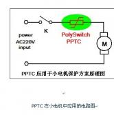 • 应用PolySwitch PPTC(正温度系数热敏电阻)来做电机的过载保护和堵转保护,就不会存在电机反复启动而酿成恶果或灾难,因PolySwitch PPTC器件能同时完成过流保护和过温保护,而且会一直保持这种
