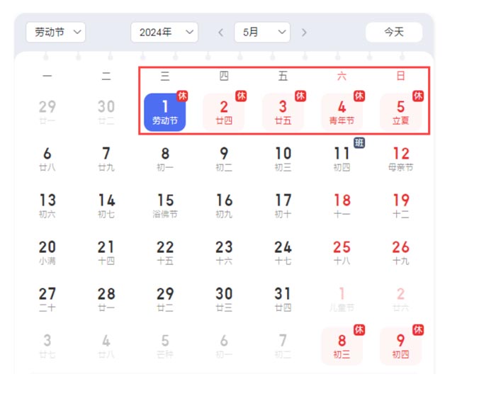 • 2024年五一放假通知